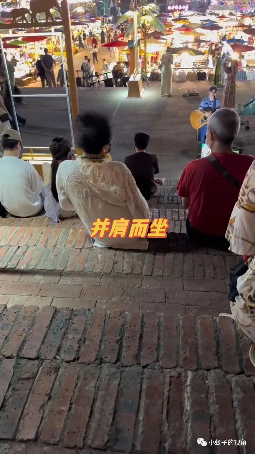 当时她也站在人群后面看表演,前面有一对五六十岁的大爷大妈,一开始两个人都站着看表演。