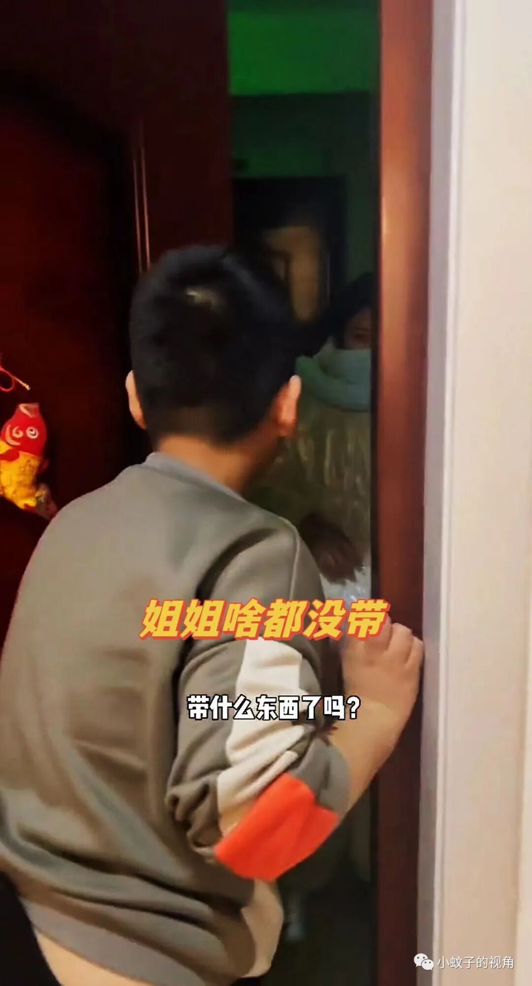 而这位弟弟看到姐姐真的两手空空,丝毫没有犹豫,顺手关上房门。嘴上还说着:“拜拜了您嘞!”