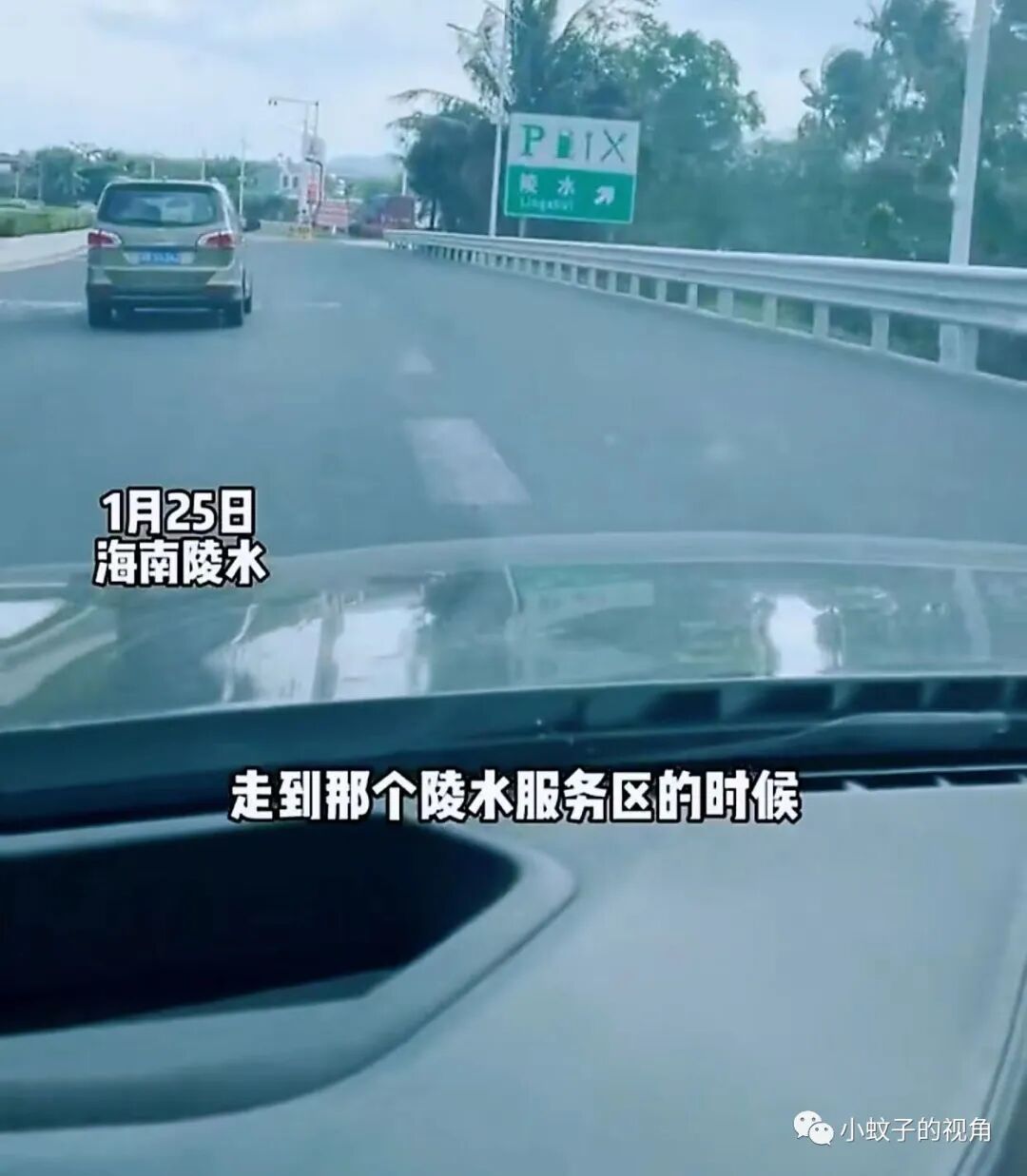 男子说,等他们的车子到达陵水服务区的时候,他下车去上了厕所,回来的时候看到孩子在车上。