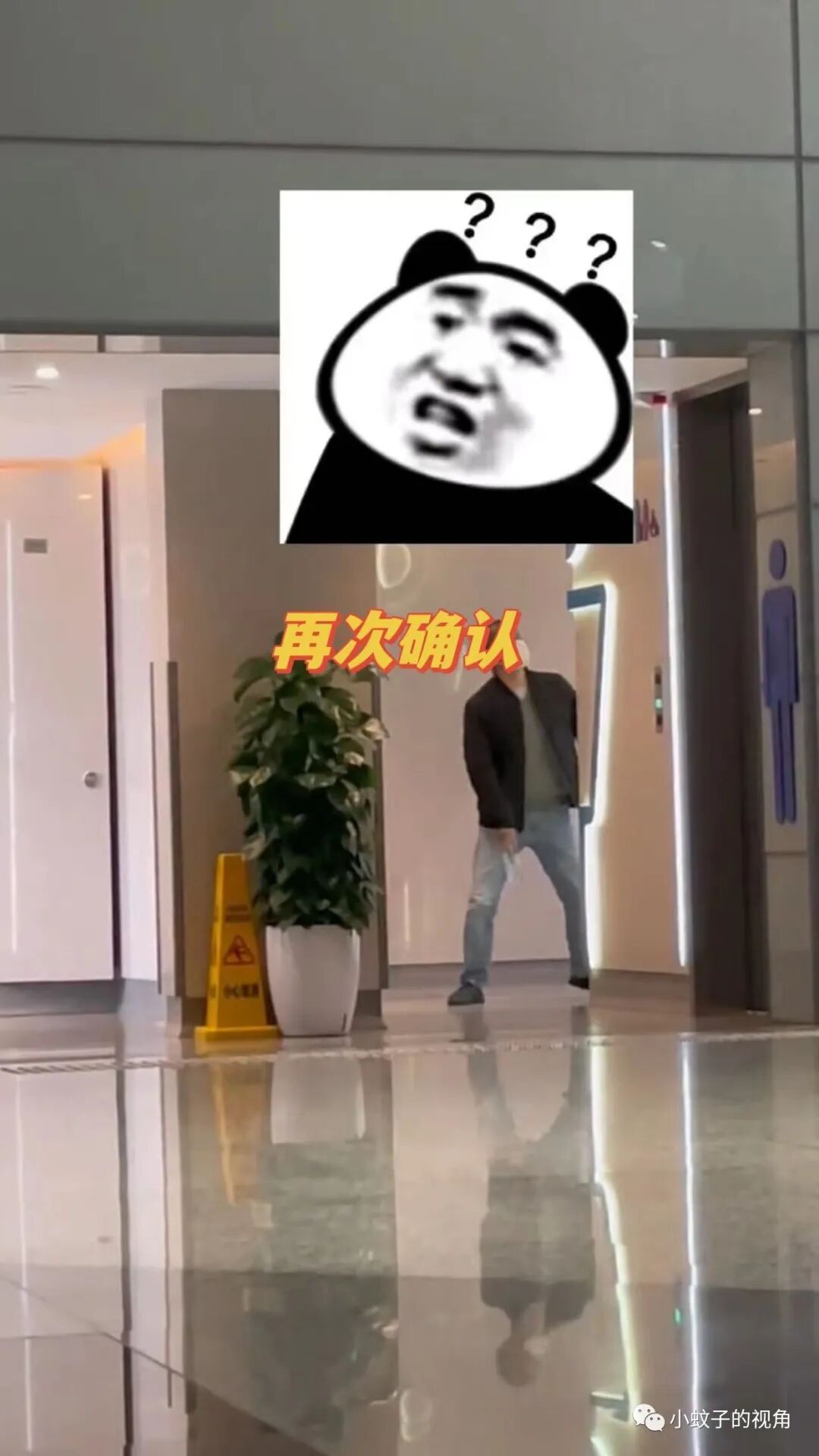 据这位网友介绍,他在商场休息等人的时候,看到一名长头发“女人”不小心进错了卫生间,本想拿起手机拍摄她尴尬的一幕,却意外拍到了一名男子的怀疑人生。