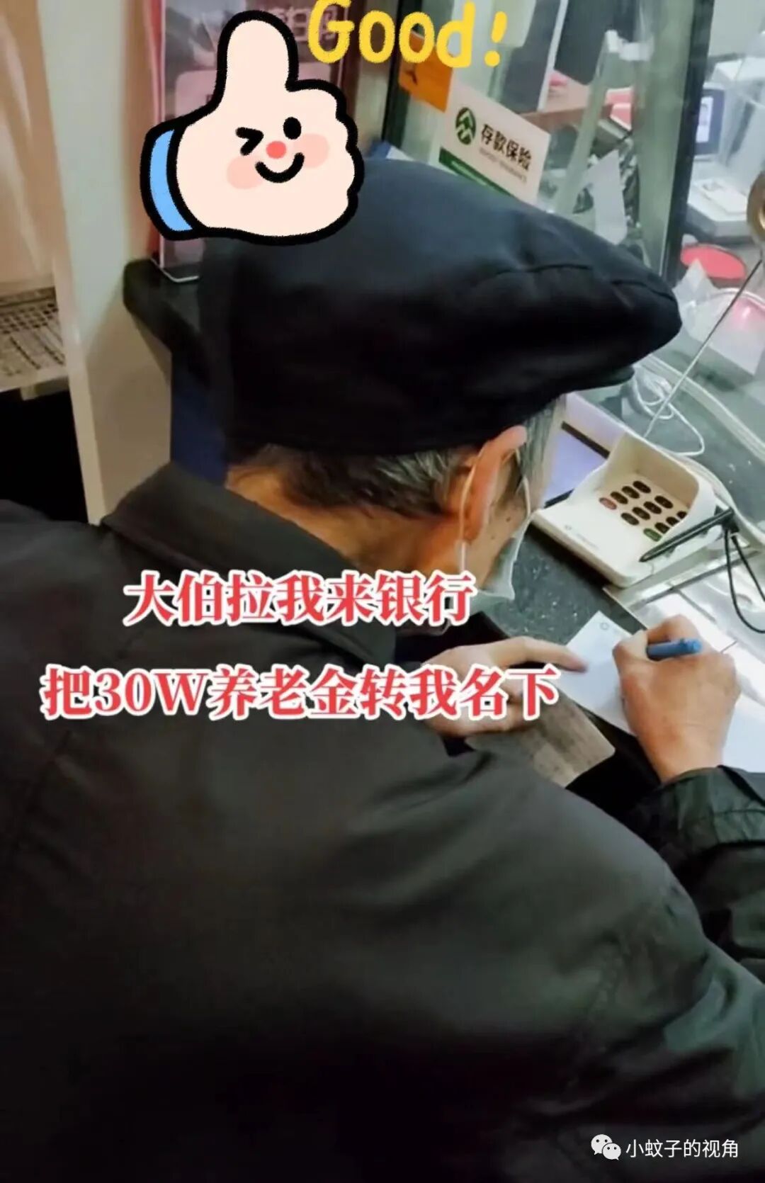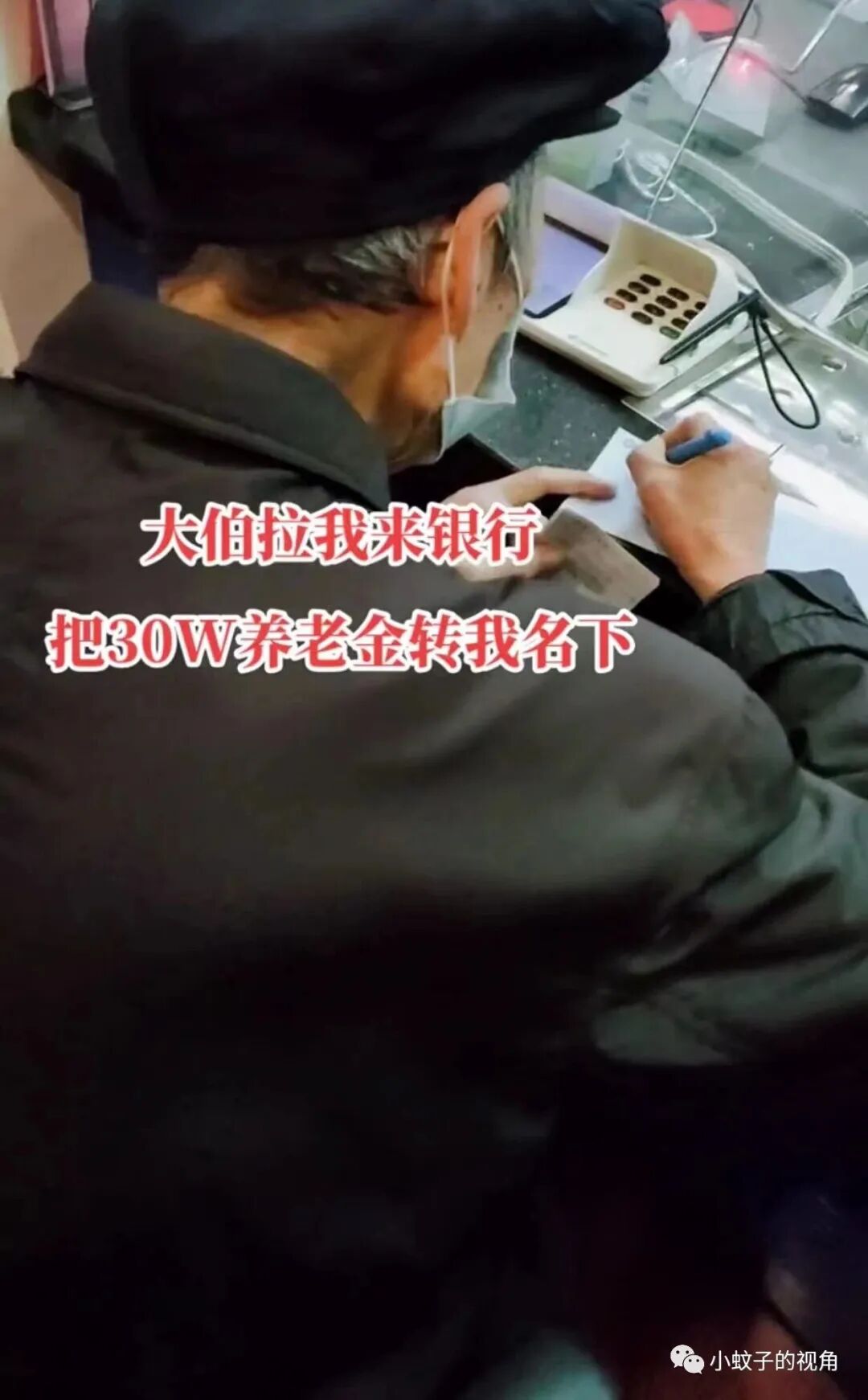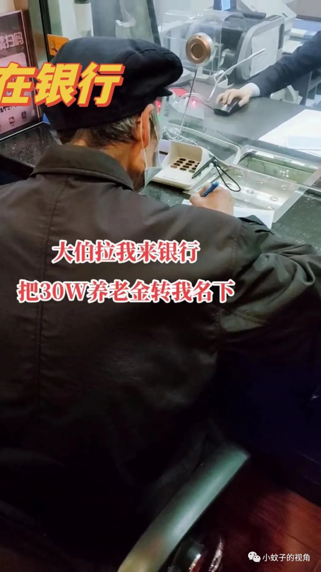 据这位男子介绍,眼前的这位正在银行柜台签字的老人就是他大伯,大伯并非没有结婚,没有孩子。