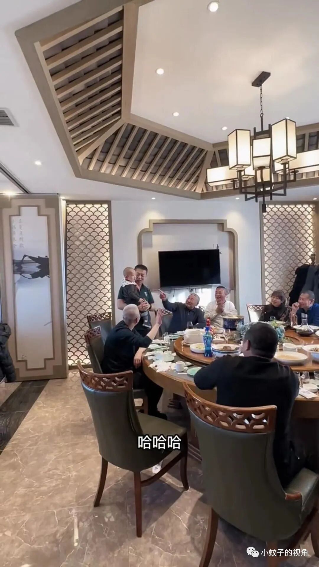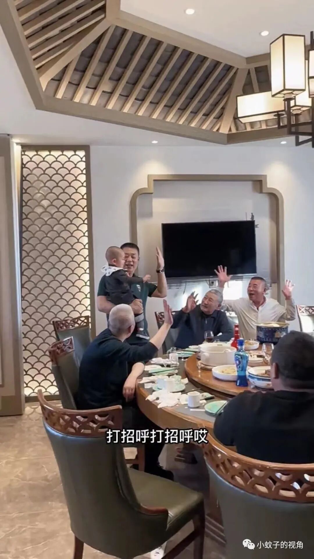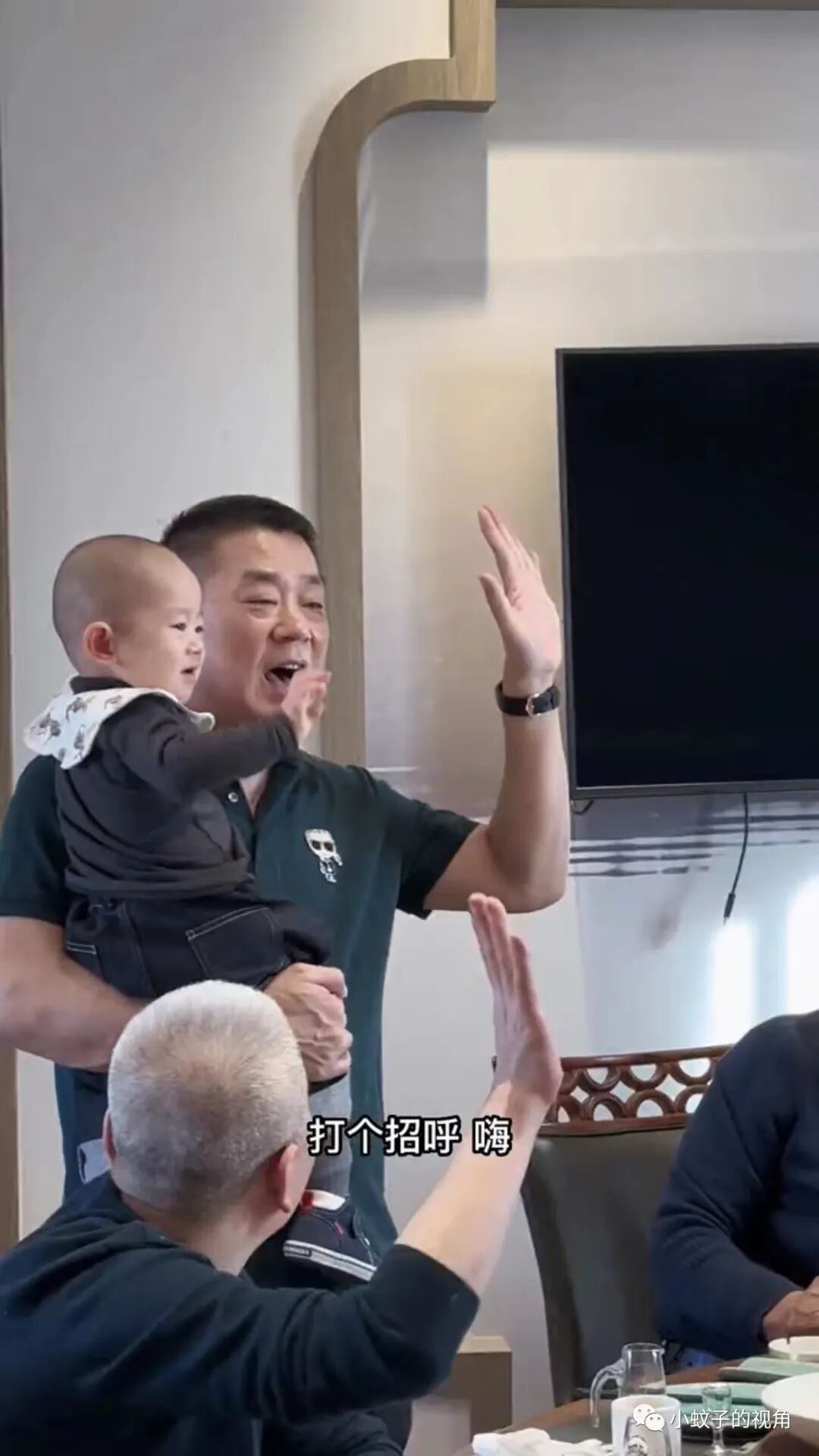 当然,孩子也非常可爱,爷爷抱着他,逗他说:“来,给大家打个招呼,拜个年。”