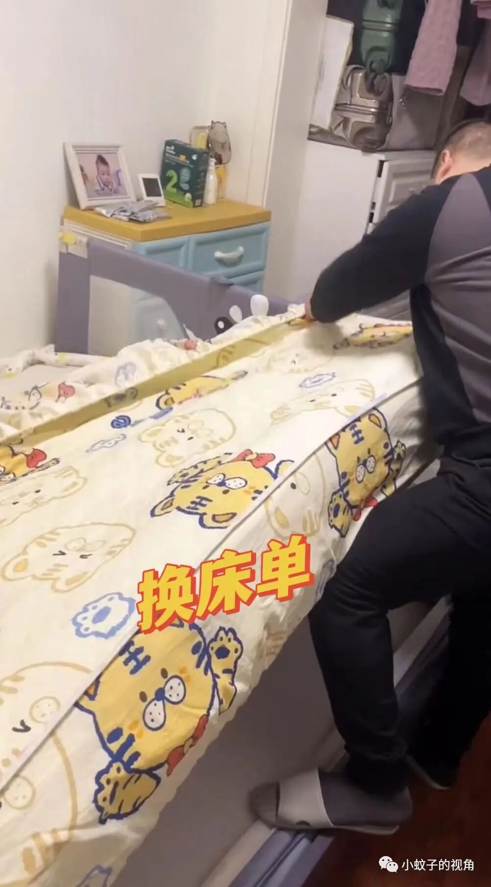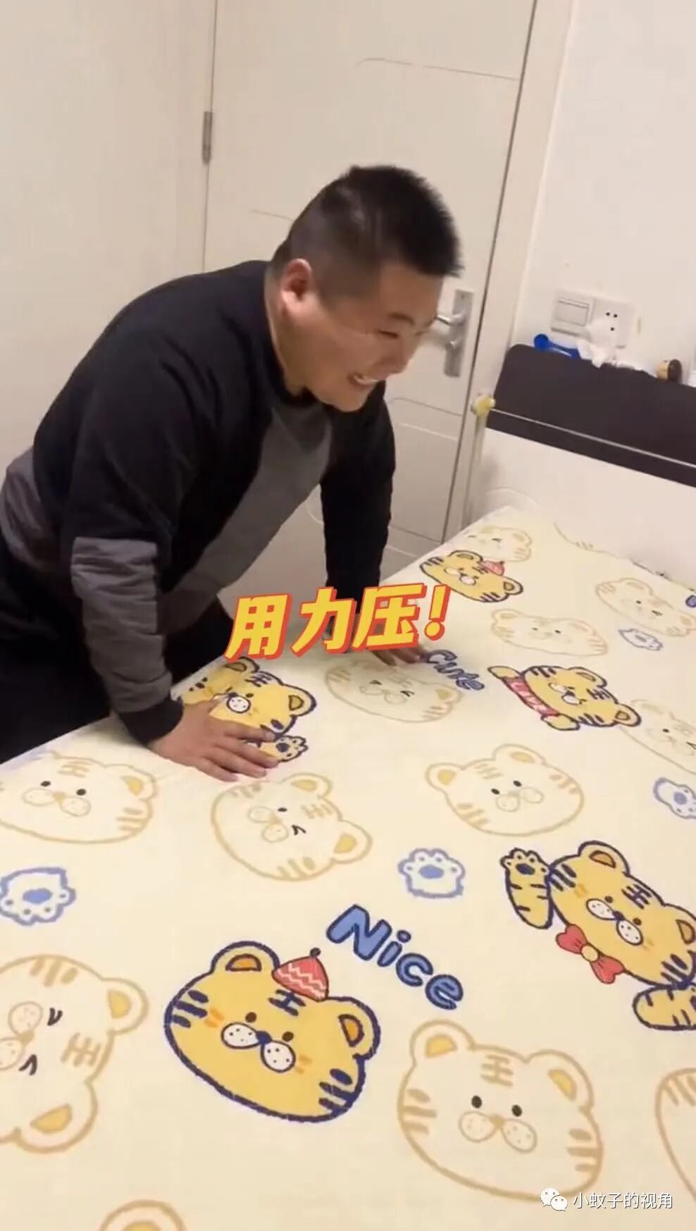 就像着这位男子一样,换床单的时候不小心将孩子压在床下,妈妈得知后前来”还治其身“,看得网友爆笑不止:活该!