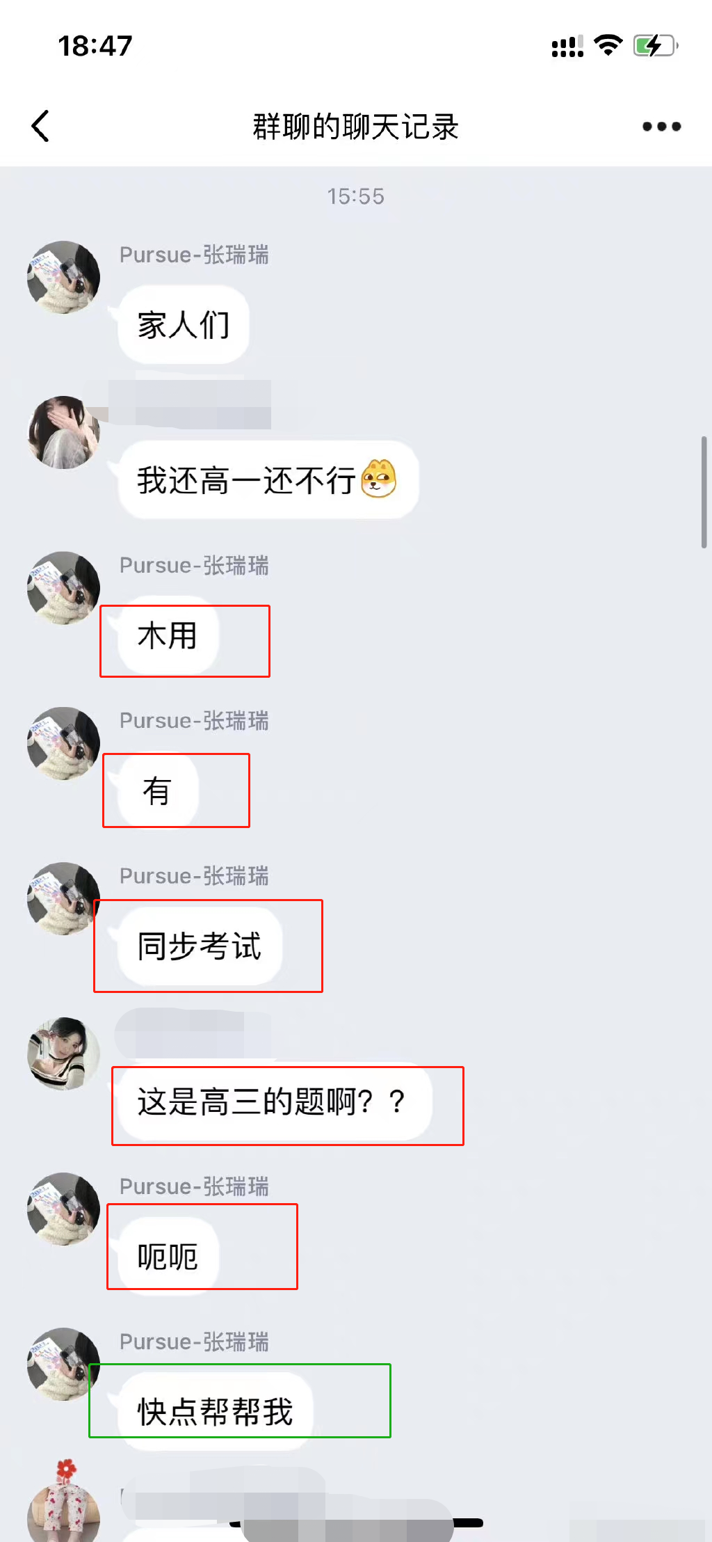 可是当你仔细看看她群里求答案的聊天记录,又会想笑,这人真的没有作弊的智商。