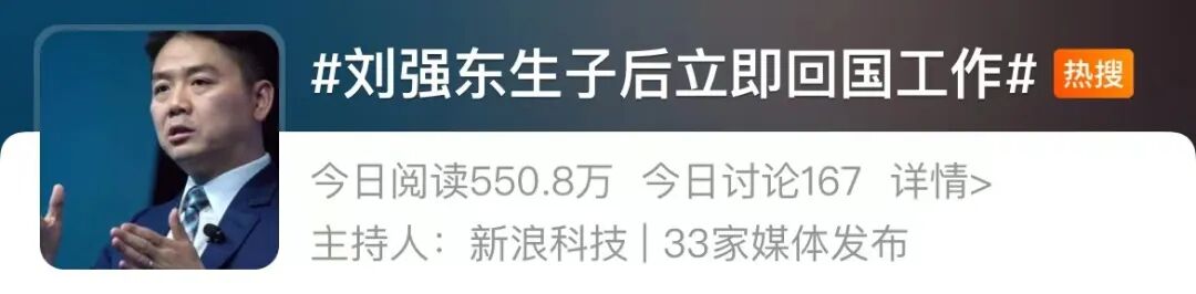 前几天“刘强东得子后立即回国工作”冲上热搜,网友爆料,奶茶妹妹是在美国生的儿子。