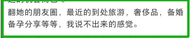 翻看她的朋友圈,是到处旅游、备婚、备孕的分享。