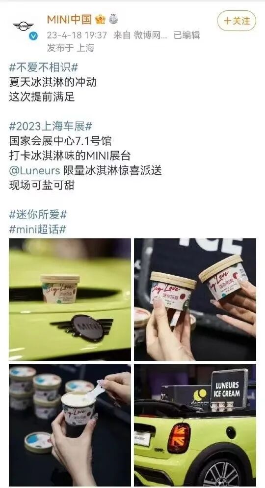 宝马MINI在上海车展参展,非常牛气地说,我们有冰淇淋惊喜派送。