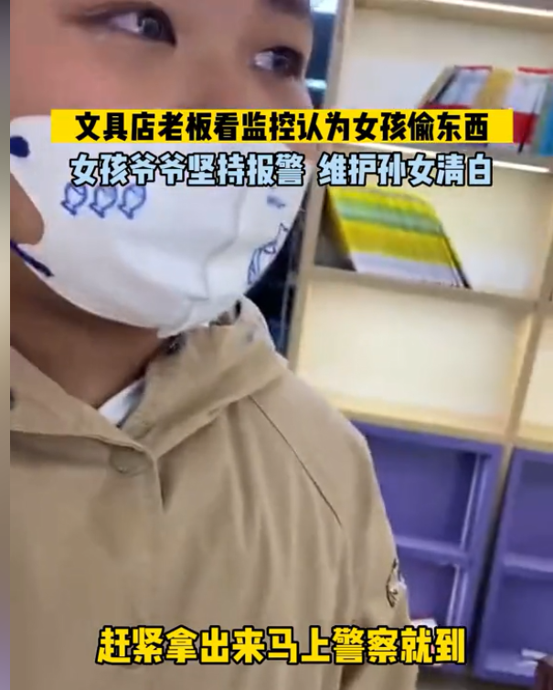 爷爷坚持报警,警察来查了监控,证明孩子确实没了一下透明胶又放回去了,确实没有偷。