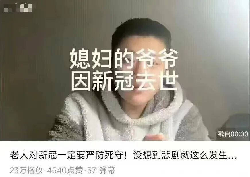 4天后,这个UP主发视频说,“媳妇的爷爷因新冠去世了,没有想到悲剧就这么发生了……”