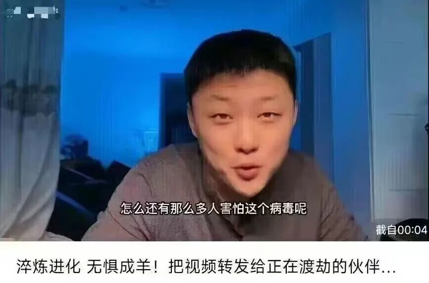 B站有个UP主,之前发视频说,“怎么还有那么多人害怕这个病毒呢”,“感染新冠就是人类一次进化的过程”,“痛苦就是一次涅槃”。