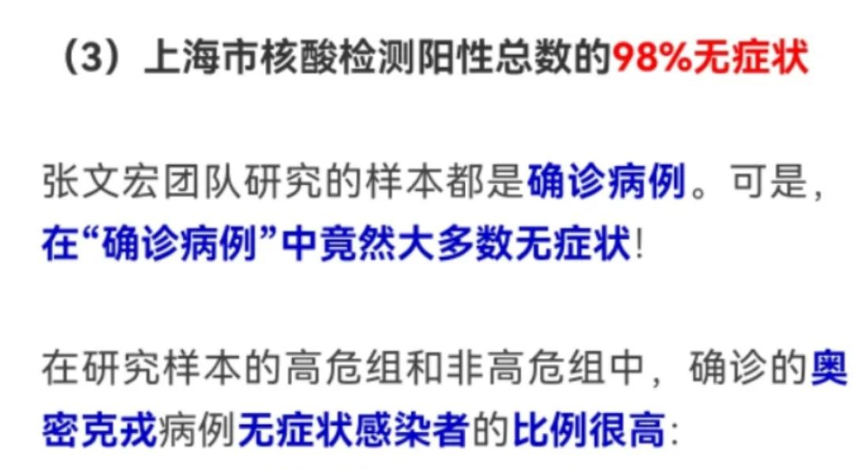 事实证明,张文宏这个数据不但不准,还说反了,应该是大部分人会发烧,一部分人不会发烧,小部分无症状。