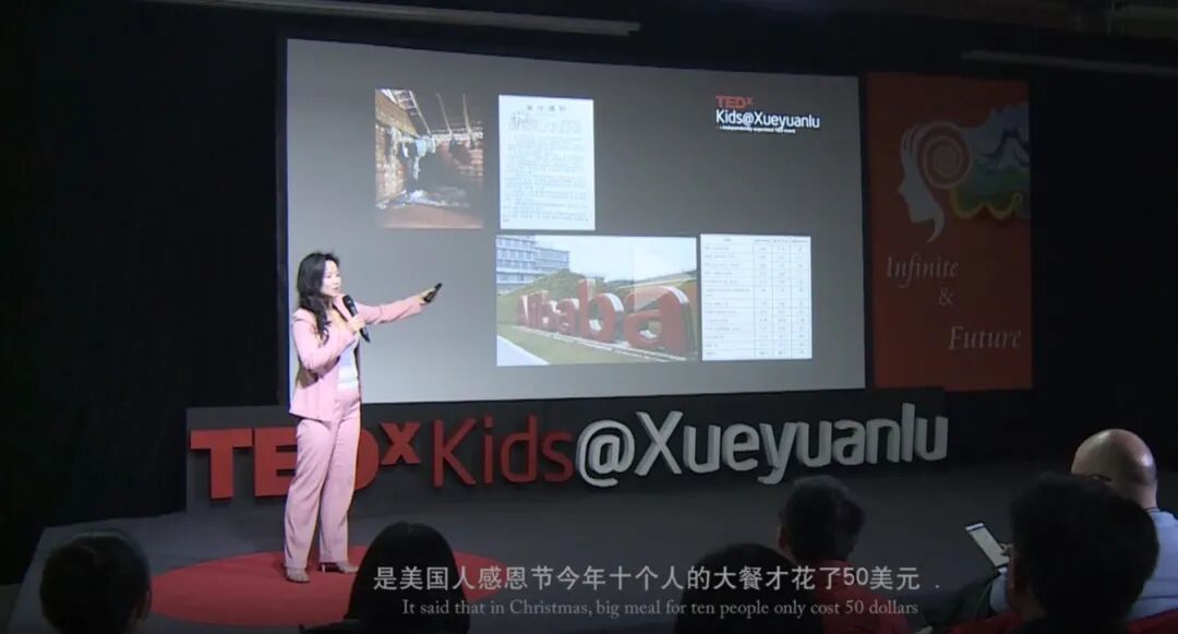 她先介绍了自己的童年,说她本来是出生在湖南的小女孩,10岁的时候被父母带到一个说英语的国家。