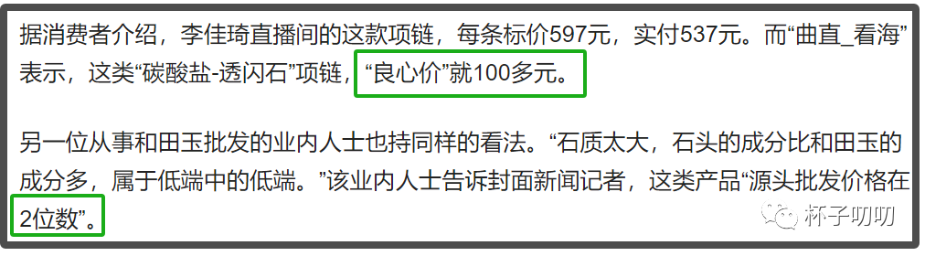 那么,李佳琦心里没数吗,他觉得500块钱卖出的是真的和田玉吗?为什么还要这样诱导消费者?