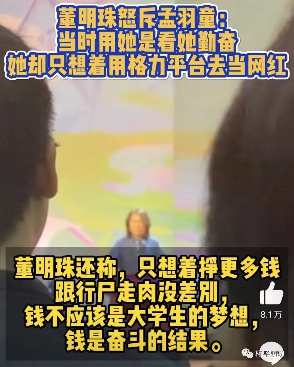 前些天,董明珠在大学生入职格力的时候又批评了孟羽童,被网友一致嘲讽为“画大饼”,“PUA员工”。