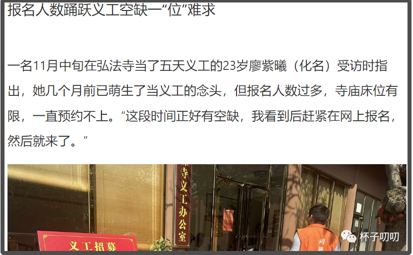 时下流行一种新的“工种”,就是到寺庙里当义工。