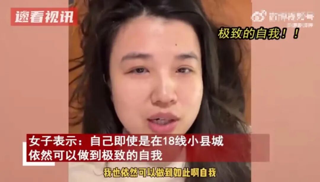 一个42岁的女子未婚未育,她炫耀自己状态超好,特别年轻,还说,能这么大年龄不结婚不是因为在北京,自己就算在18线小城市也能这样极致自我。