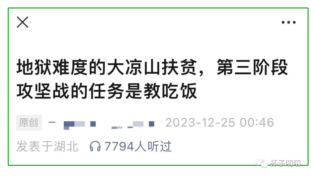 某个有名气的大号发了一篇文章,讲的是咱们国家在大凉山扶贫攻坚的过程有多难,第三阶段任务是教吃饭。