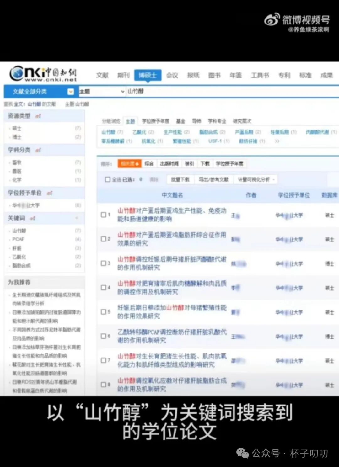 更可怕的是,他还指导了很多硕博学生们搞这个研究,论文差不多都是山竹醇对产蛋鸡的影响、山竹醇对妊娠后期猪的肝脏影响、山竹醇对母猪繁殖的影响……