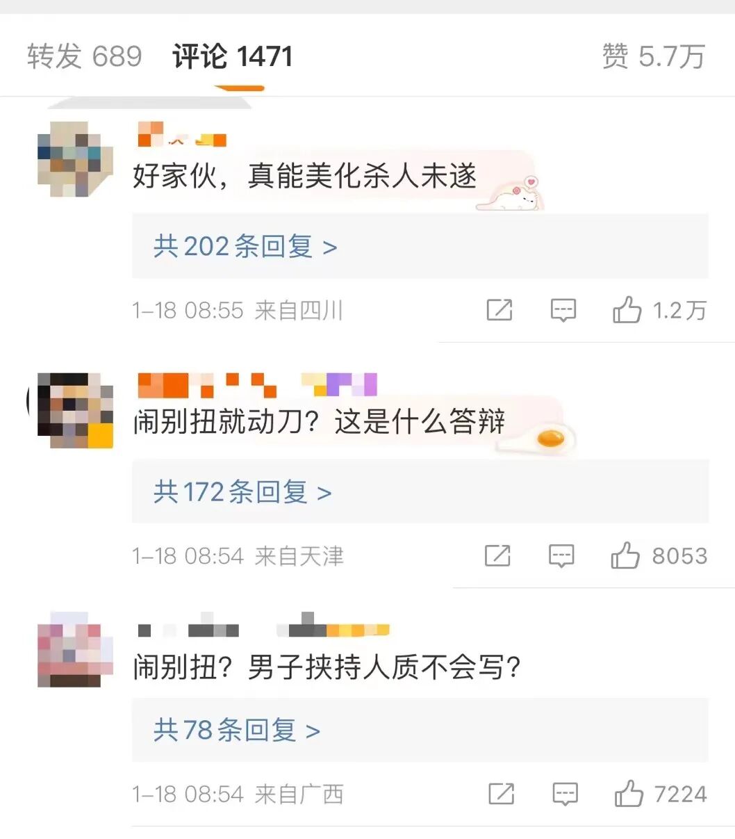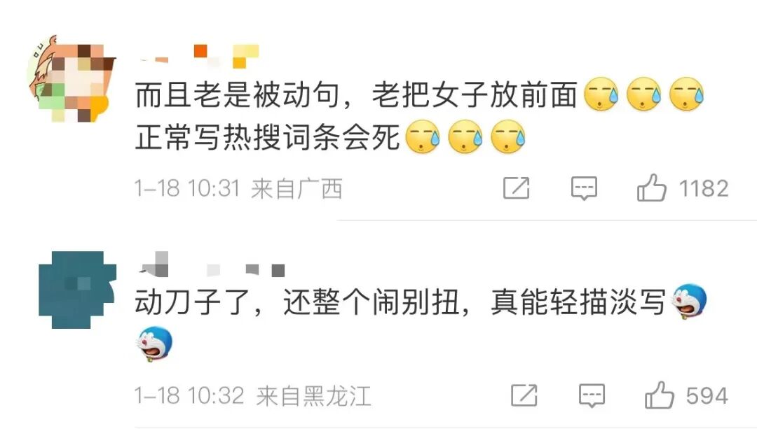 网友们开始狂怼:“这不是美化杀人未遂吗?”“闹别扭动刀子?”“持刀怎么锁喉?”“标题不会写吗?老是被动句,正常写热搜词条会死”