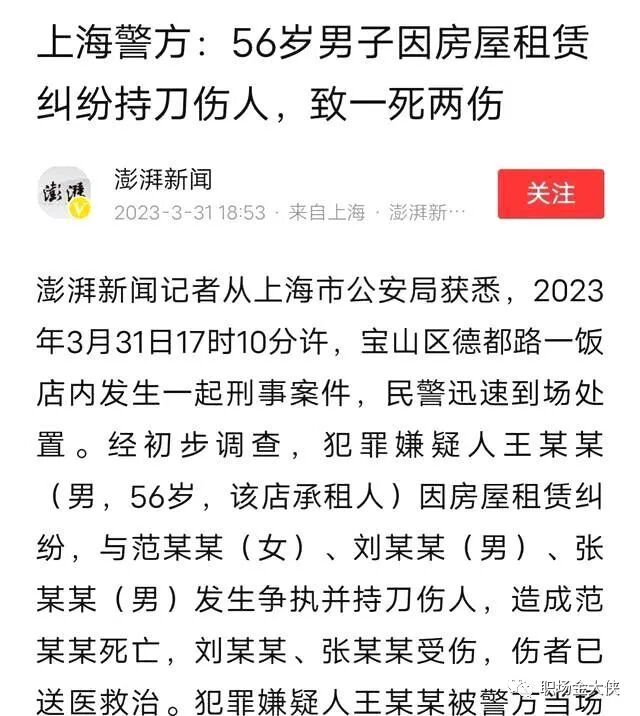 继3月东莞发生房客砍杀二手房东事件后,近日,上海市宝山区德都路再次发生一起惨烈的砍人事件。据目击者和网友爆料,一名女房东遭到一名租客的残忍砍杀,女房东的两名男性朋友也被砍成重伤。该事件引起了社会各界的广泛关注和谴责。