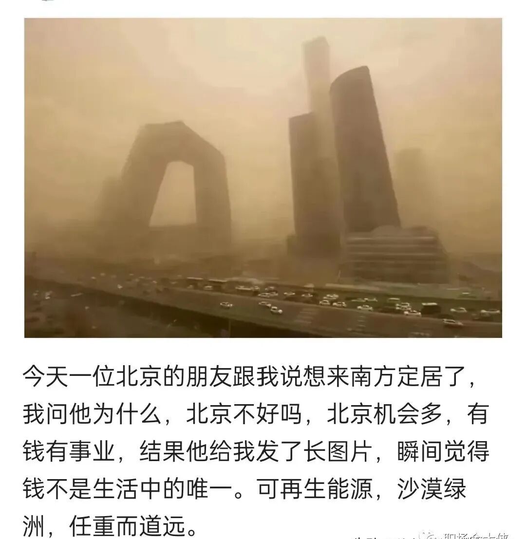 2、北京这点风算什么啊?大小在内蒙长大,一年四季只刮一次风!从春刮到冬,上学回来头发都黄的,洗头发一盆泥,没办法,气候,天气,条件,地理位置就这样,过了五月就好了,再说这风根源也不是蒙古刮来的,只要一降温不就西北风吗?南风是雾霾,西北风是沙尘,没啥抱怨的,少出门呗。