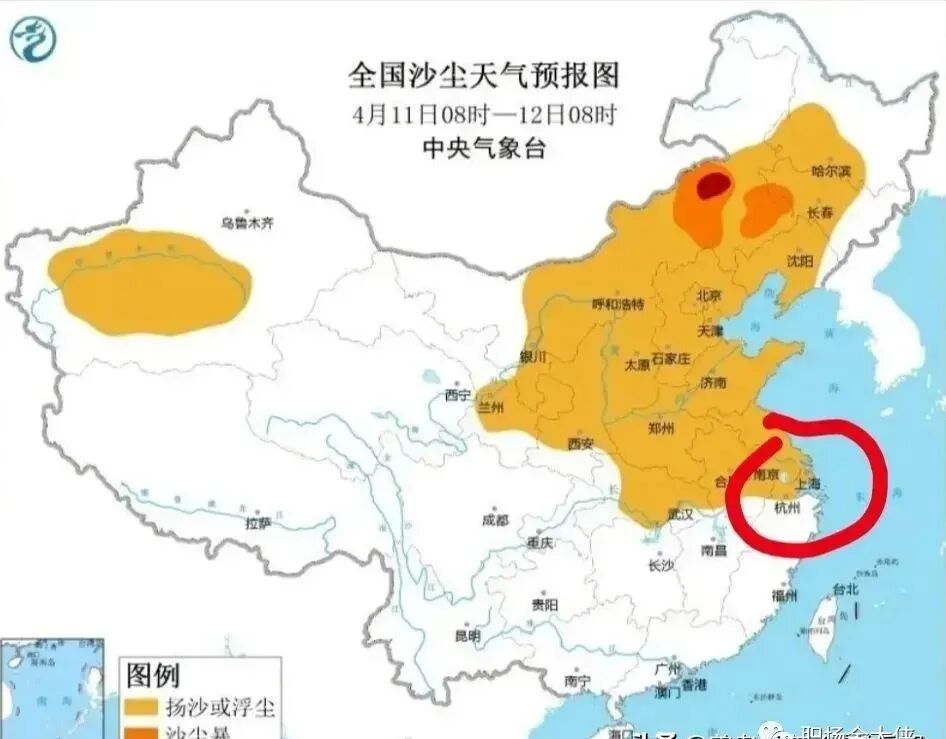 沙尘暴影响江南地区还是很少见的,杭州上海竟然都被攻陷了——