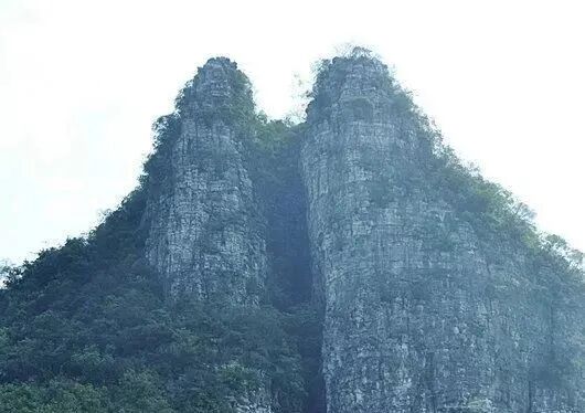 天神用雷鞭将两人分开,兄长被抛到最高点变成现在的猪头山,似一个猪头在供祭着河对岸的母亲。妹则被雷鞭从额头劈下,瘫在江边,就变成了破额山了。(想不通一家人咋都变成山了???)
