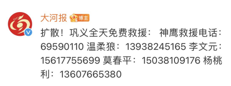 河南卫视发了全省的求援信息,有需求的同学收好。
