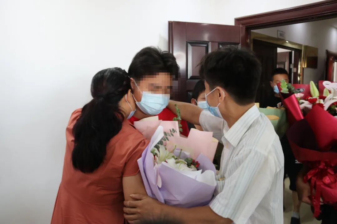 见到儿子的那一刻,夫妇俩压抑在心里多年的情绪,在这一刻释放,一家三口相拥在一起,泣不成声。