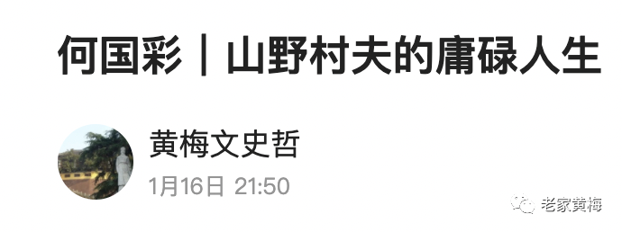 我之前拜读过何国彩写的很多文章,真正能对号入座还是在会议的第二天。在黄梅文史哲公众号的合影里配有相对应的姓名,我这才知道这位穿着朴素,相貌平凡却落落大方的老人竟是才华横溢的何国彩老先生。