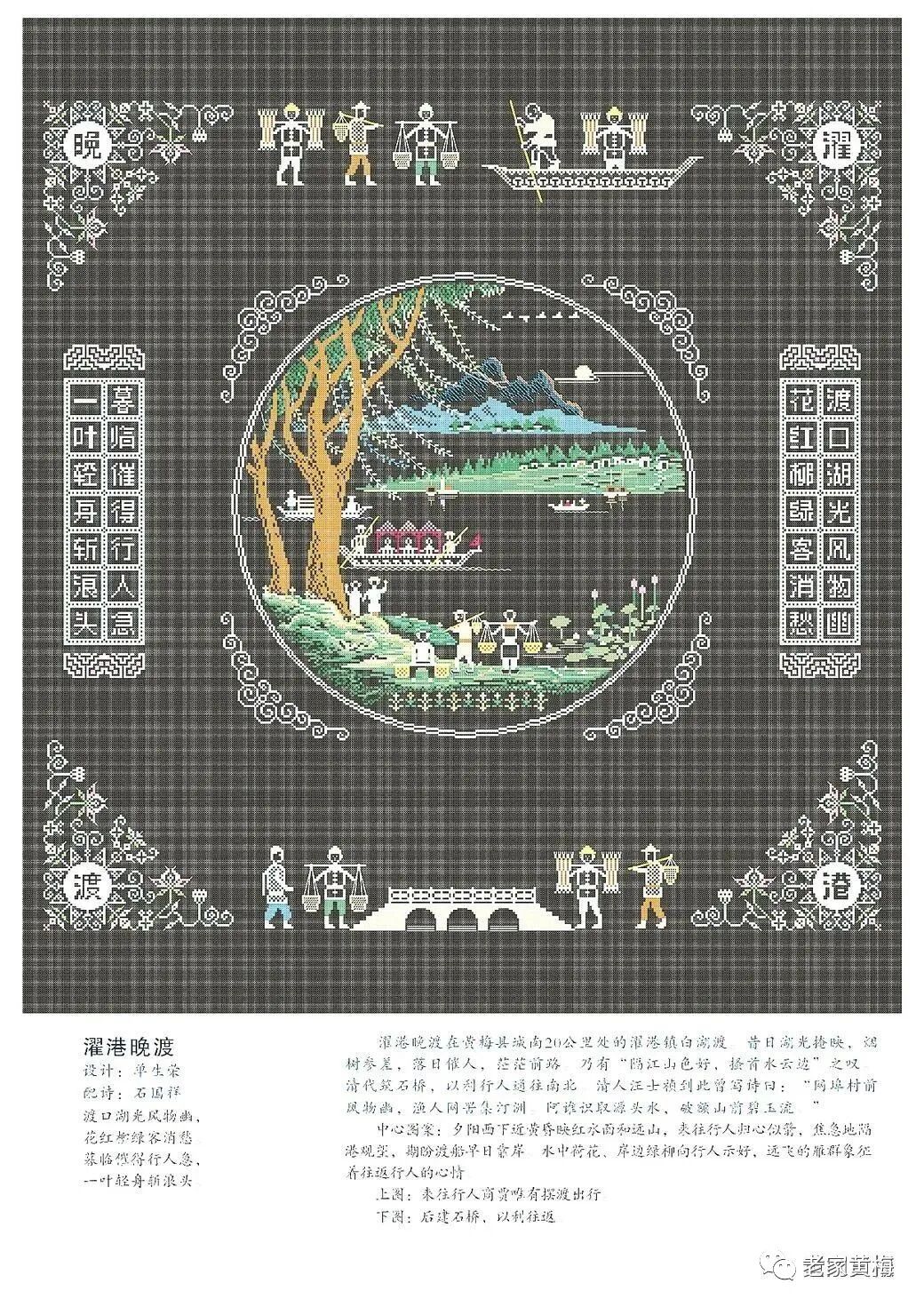 黄梅挑花图样——濯港晚渡。(设计者 单生荣)