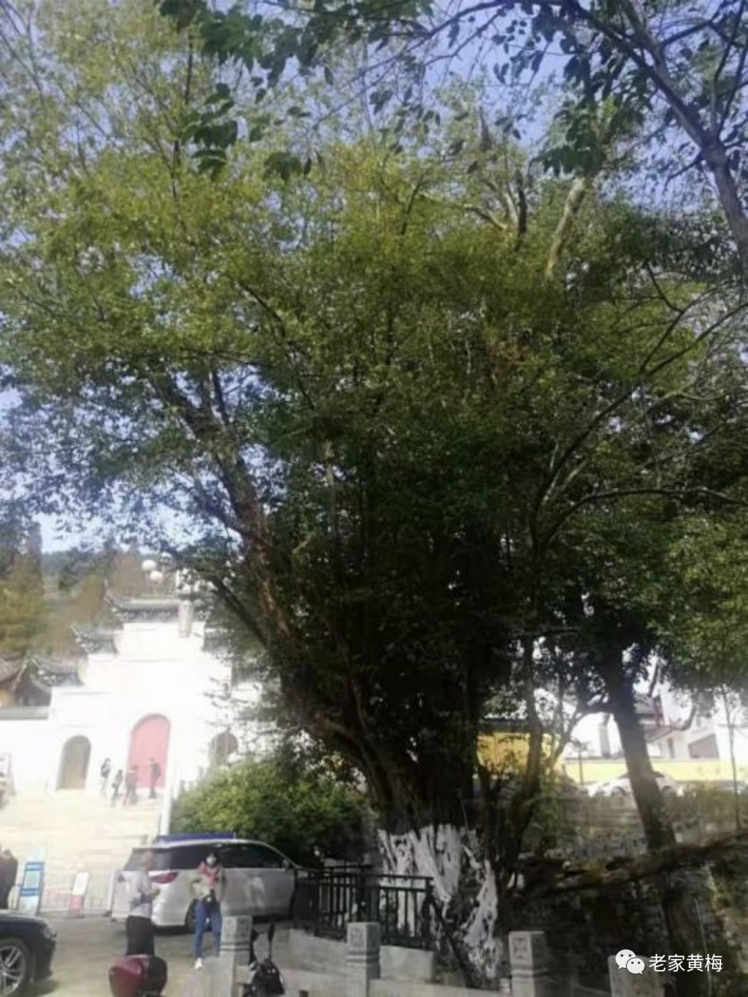 五祖寺庙前,立有六株古稀青檀(俗称油朴树),其中最大的一株,粗四围,高28米,覆盖面积近1亩。是国家一级保护古树,树龄1700年以上,相传清代兵匪入寺,刀砍斧劈此树,夜间古树作人呻吟,兵匪遂止。得以保存。