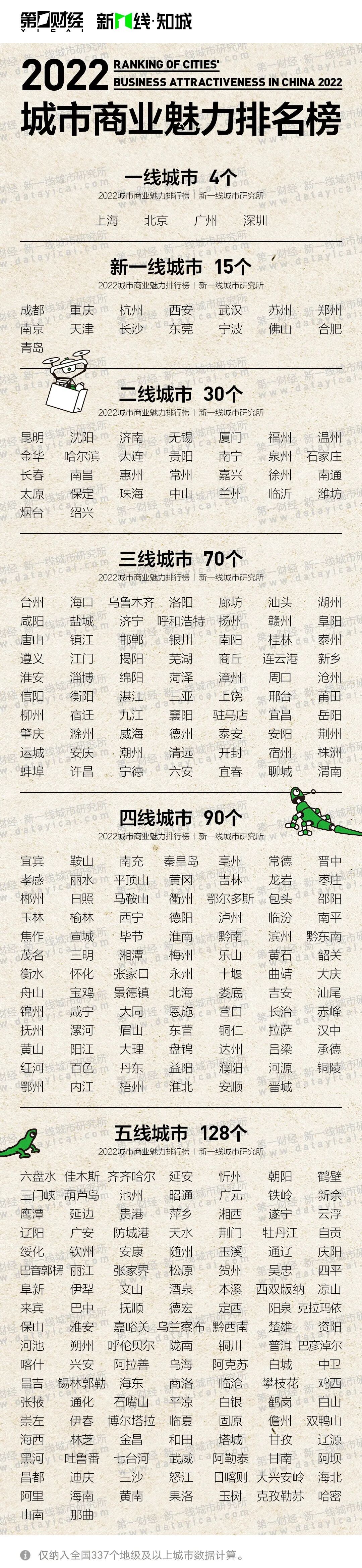 采用170个主流消费品牌的商业门店数据、17家各领域头部互联网公司的用户行为数据和数据机构的城市大数据,《城市商业魅力排行榜》每年都围绕商业资源集聚度、城市枢纽性、城市人活跃度、生活方式多样性和未来可塑性五大一级维度来评估337座地级及以上城市的发展情况。