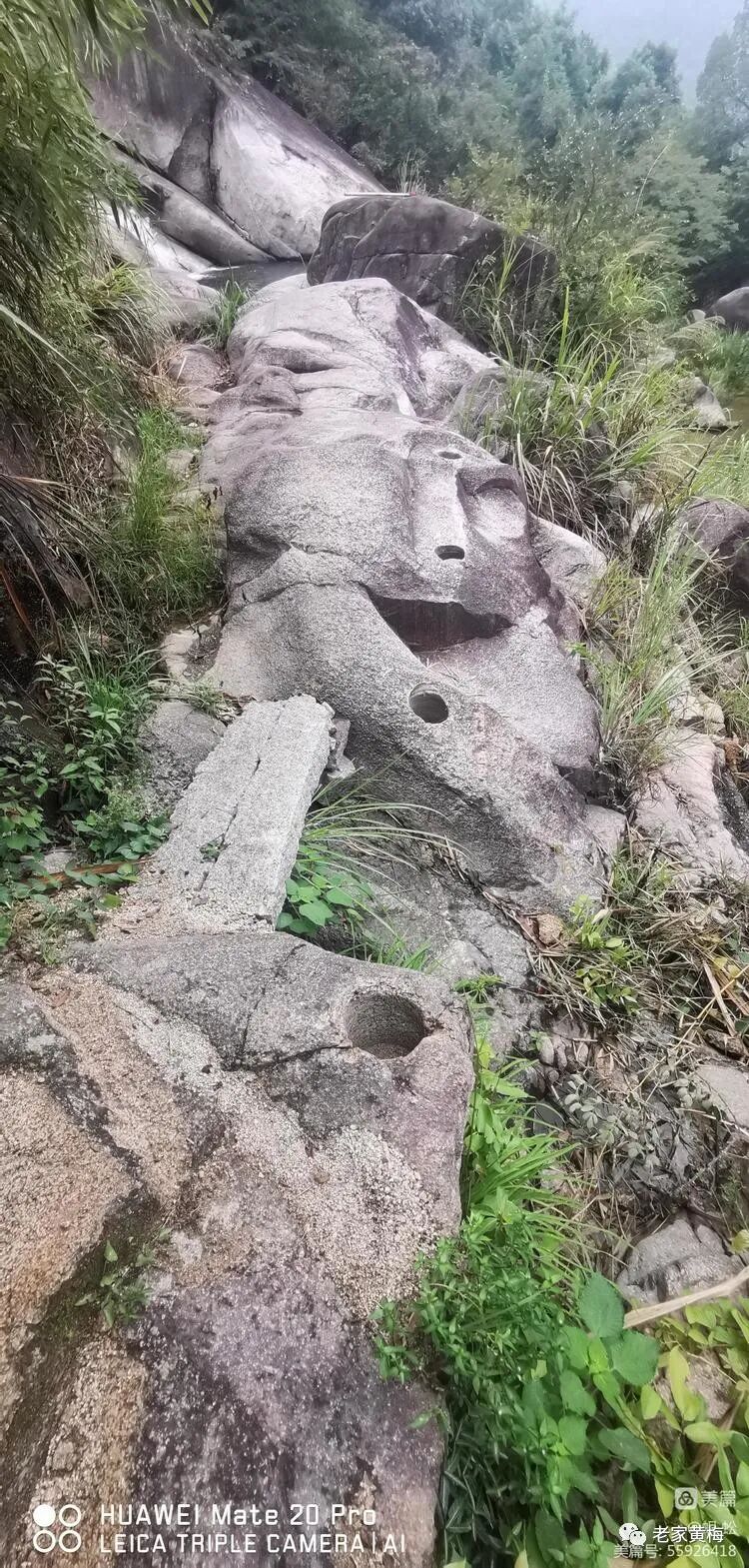 大石上方有方圆十平方米的石平面,正好与潭口面平衡,成了天然的观潭石。