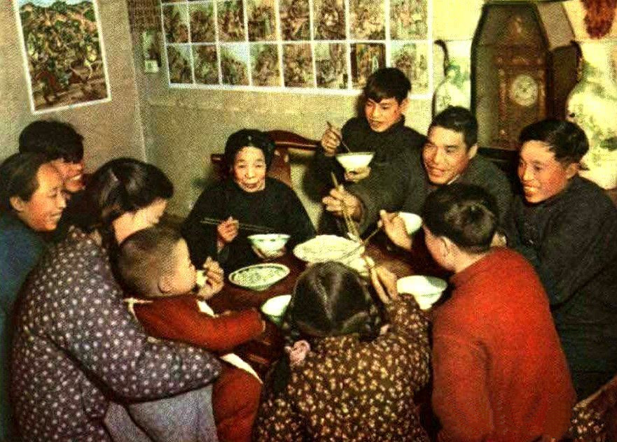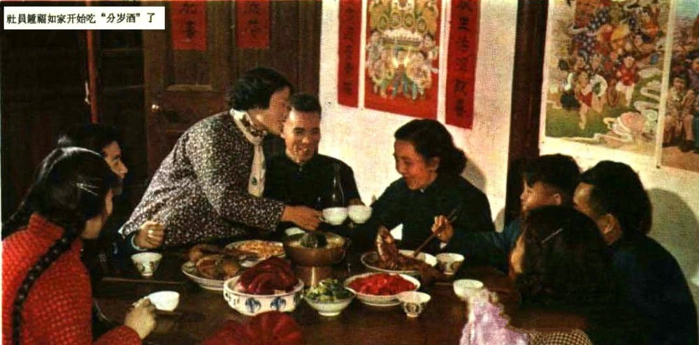 除夕之夜,家人团圆,守岁围炉,温情四溢。1953年春节,天津一家人吃团圆饭的场景。