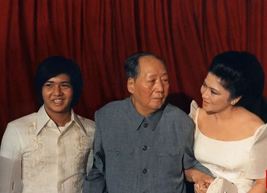 晚年毛泽东的外事活动非常繁忙,从上世纪70年代起,外国首脑大凡踏上中国的土地,都会有个急切要求:拜会毛泽东。毛泽东身体日衰,外宾求见的要求日盛。图为1974年9月,毛泽东会见菲律宾总统马科斯夫人伊梅尔达和她的儿子。
