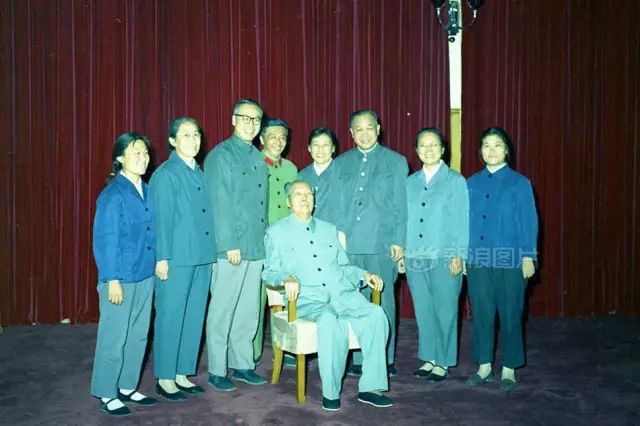 毛泽东晚年疾病很多,他还患有老年性白内障,眼睛非常怕光。1975年春天,毛泽东的眼睛基本失明。中央决定由北京中医研究院的大夫唐由之为毛泽东做手术。左眼手术取得成功,毛泽东又可以继续读书了。图为毛泽东与唐由之(左三)等医护人员合影。