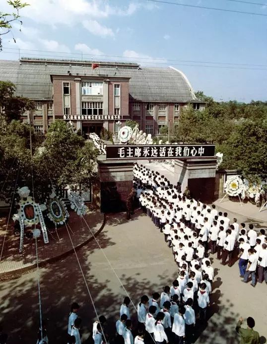 1976年9月,长沙市各中、小学师生到悼唁厅悼念毛泽东。