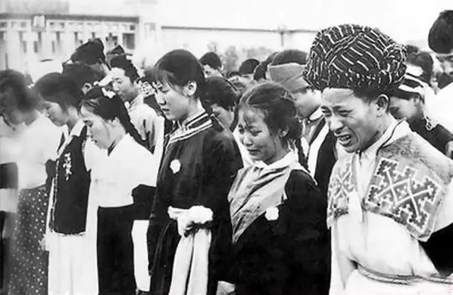 参加毛泽东追悼会的少数民族代表们。