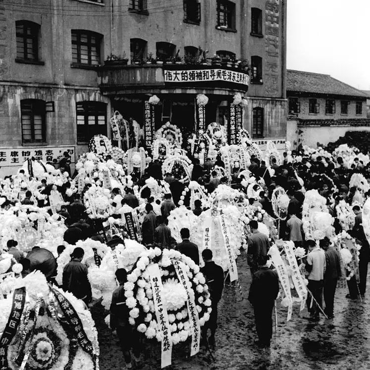 长沙附近群众悼念队伍到清水塘悼念毛泽东逝世。