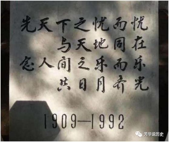 李先念去世以后,他的墓碑上刻着“先天下之忧而忧 与天地同在,念人间之乐而乐 共日月齐光”,这句话中的包含了李先念的名字,也是他这一生真实的写照,他的心中装着家国天下,始终热爱着自己脚下的这片土地,和生活在这片土地上生活的人民。