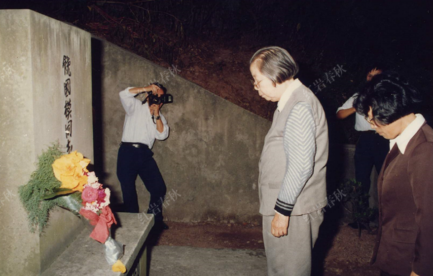 第一次献花,是来到红岩公墓。这里安葬着她的母亲杨振德、周恩来的父亲周贻能,还有周恩来的秘书李少石等11人的骨灰。邓颖超招呼此行陪同她的中央办公厅副主任杨德中、秘书赵炜及身边工作人员,一起在墓前致哀,并献上鲜花。