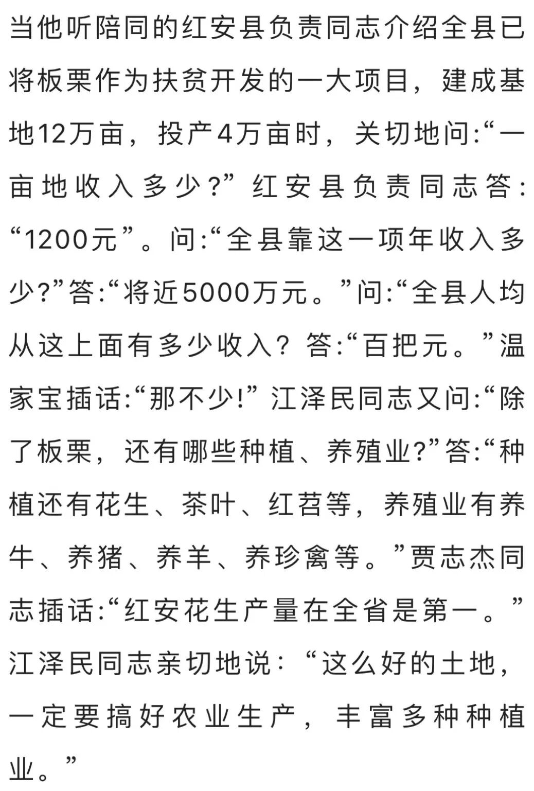 那是1996年9月18日,江泽民同志带领时任中共中央政治局候补委员、书记处书记温家宝等部分中央领导,在时任湖北省委书记贾志杰、省长蒋祝平和原广州军区政委史玉孝的陪同下来红安视察。