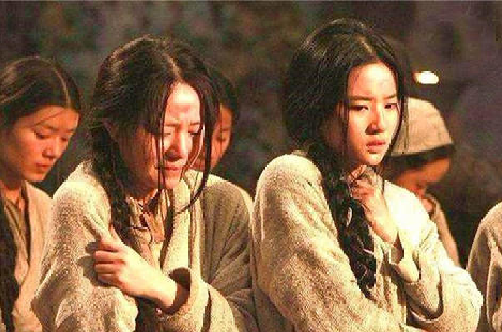 这是影视剧中塑造出来的女犯人形象,与真实的古代女犯人砍头画面完全不一样。为什么我会这么说呢?因为古代女犯人被拉到刑场的时候,都是蓬头垢面的,还有就是女犯人行刑时,必须要脱掉她们上身的衣物。
