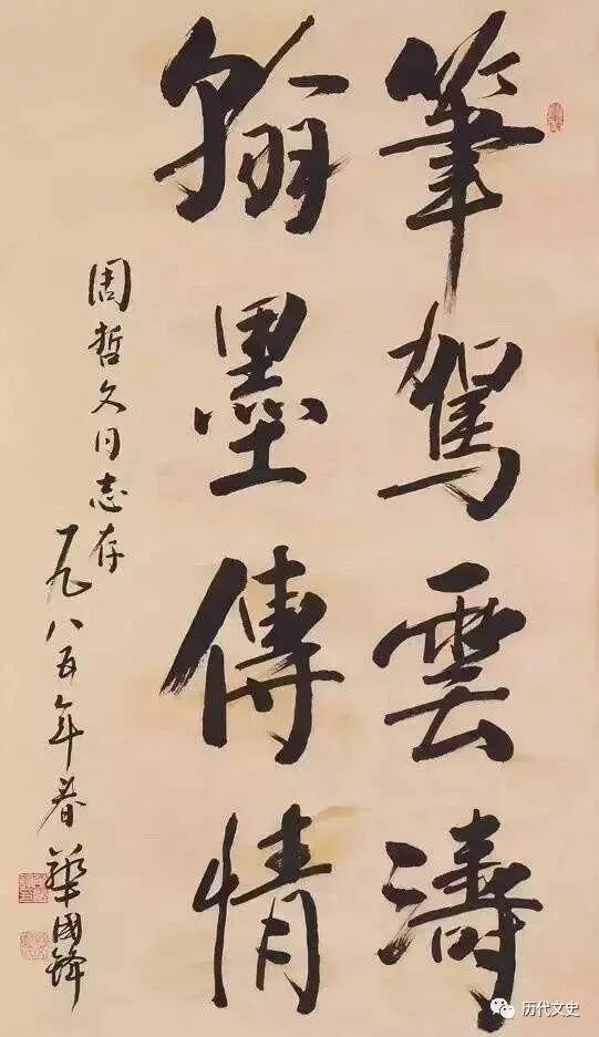 华国锋在这些领导人中,在书法上下的功夫是比较大的,这从他字中能够看得出来——如果说毛主席的书法是眼界、胸怀的外化,周总理的书法是心性、涵养的流露,那么华国锋的书法展现的完全是扎实的书写功夫。