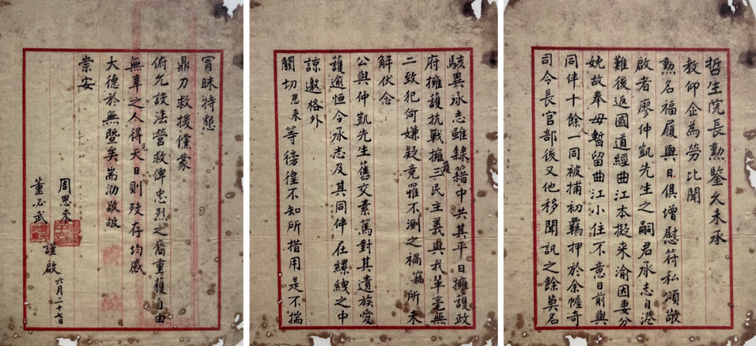 图:周恩来、董必武致孙科函 来源于“中国历史研究院征集海外中共珍稀文献展”