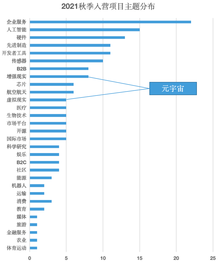 从现场分享的“2021秋季入营项目主题分布”图中还能看到,企业服务、人工智能、硬件、先进制造、开发工具、商业航天、传感器、芯片等是今年秋季营项目的重点主题。除了硬科技项目以外,投资的项目中还有可持续年轻服装品牌、老年人消费品牌、农业等项目。