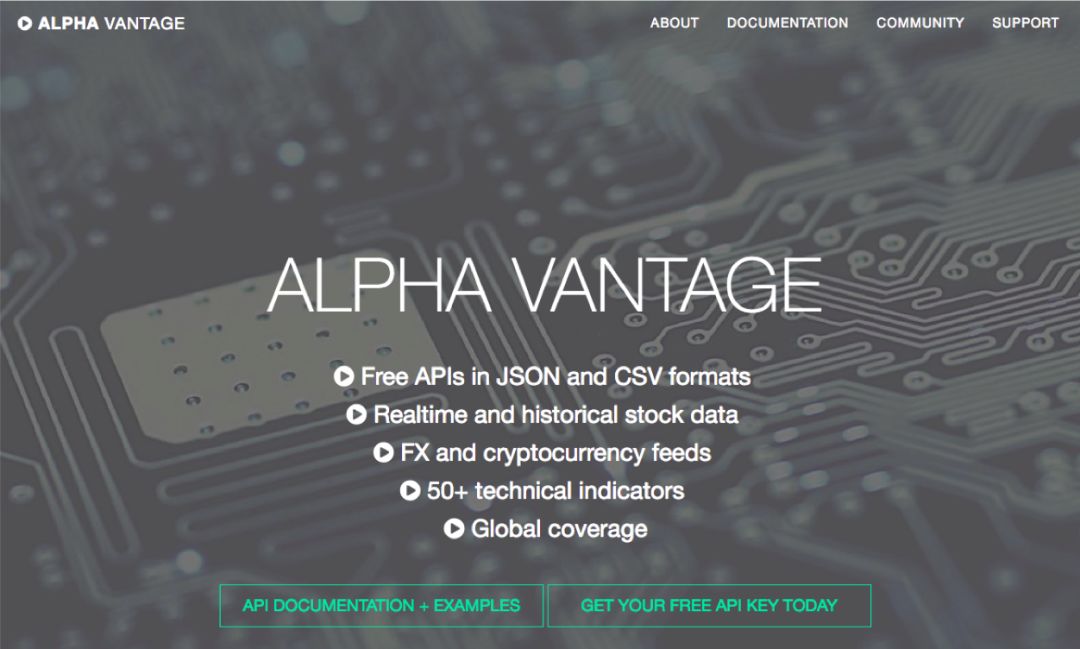 Alpha Vantage 提供免费的金融市场 API 。API 包含了针对股票、外汇、数字货币、加密货币等资产的实时交易数据和历史数据。