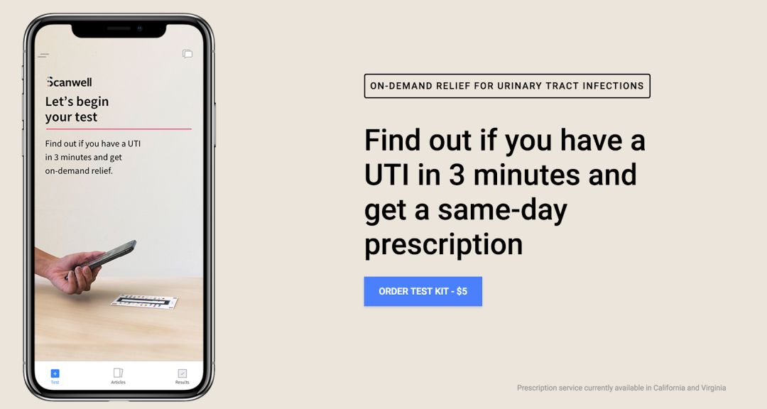 Scanwell Health开发出一款尿液检测系统,目前仅限于用于测试泌尿道感染。用户可以在家里用试纸和手机镜头进行尿液检测,通过分析试纸所显示的颜色得出检查结果。检测包的价格是 5 美元,若想确认检测结果,Scanwell 会安排医生做详细的确认,用户需要额外的服务费。若发现泌尿道感染,Scanwell 也会提供抗生素处方帮助用户治疗疾病。https://www.scanwellhealth.com/