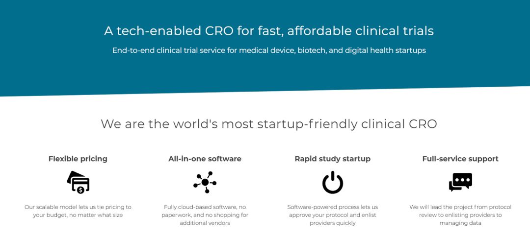 Curebase 是致力于提供快速,经济,高科技支持的临床医疗实验外包服务。Curebase 十分适合初创企业。他们有规模化的模式,根据客户,提供灵活的定价。全覆盖的云端服务是的他们的软件替代了多余的文书工作和避免了额外的供应商需求。